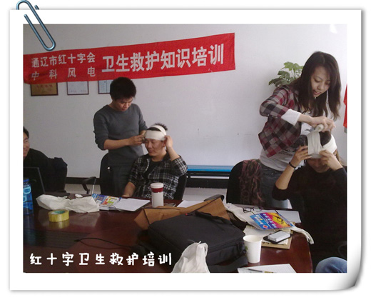 2011年4月16日,中科風電(北京)有限公司與中科風電(通遼)有限公司技術(shù)開發(fā)部、售后服務部員工共計14人參加的紅十字會急救培訓在通遼子公司會議室舉行。此次培訓由北京公司人力資源部組織,聘請通遼市紅十字會培訓中心救護老師現(xiàn)場指導講解,所有參加培訓員工進行了實際操作,如心肺復蘇術(shù)、人工呼吸、緊急包扎等現(xiàn)場救護要領(lǐng),全部參加培訓人員基本掌握了意外救護的黃金時間基本常識,培訓老師也在實際操作中進行手勢及方法的指導。在培訓結(jié)束后,參加培訓人員均拿到由通遼市紅十字會頒發(fā)的救護員證書,并對此次培訓的實際應用效果表示好評。